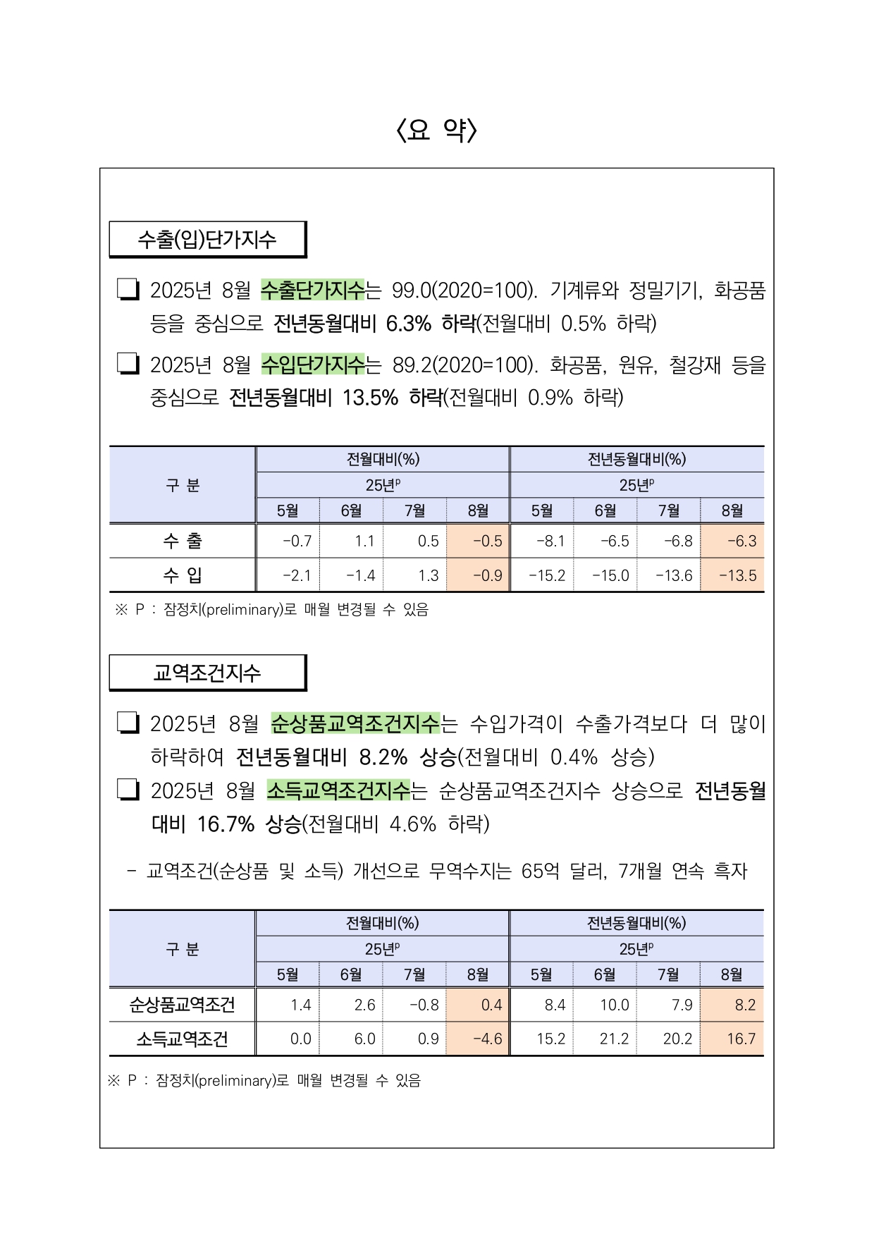 2025³â 8¿ù ¼öÃâ(ÀÔ)´Ü°¡Áö¼ö ¹× ±³¿ªÁ¶°ÇÁö¼ö